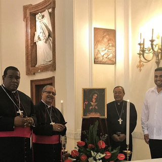 Nei primi giorni di settembre, è stato da noi al Collegio Mons. Víctor Hugo Basabe, vescovo della diocesi di San Felipe (Venezuela), che per la prima volta ha un seminarista al Sedes Sapientiae, il nostro compagno Rubén Rodríguez. Posteriormente, tra la metà di settembre e l’inizio di ottobre abbiamo avuto la grazia di ricevere la visita di diversi vescovi che sono passati dal Collegio per incontrare i rispettivi seminaristi, nonché il rettore. In particolare il 14 settembre abbiamo avuto ospiti del Collegio i Monsignori Ramon Benito Angeles Fernandez, Faustino Burgos Brisman C.M. e Jesus Castro Marte, vescovi ausiliari dell’arcidiocesi di Santo Domingo (Repubblica Dominicana) che ci hanno donato un’immagine di Nostra Signora di Altagracia, patrona del paese.